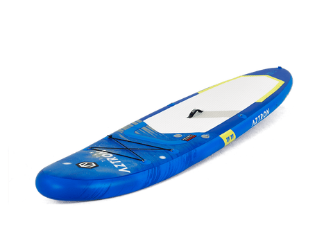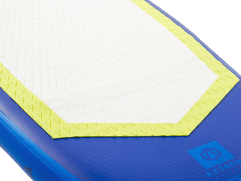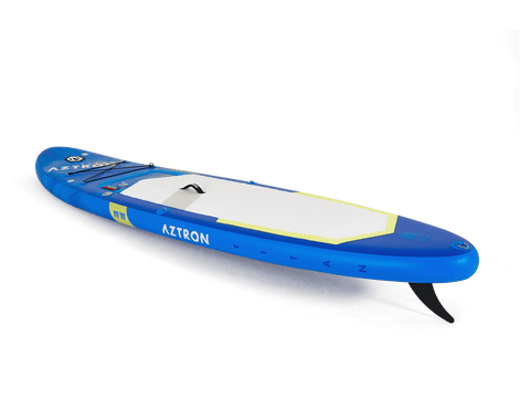 They’ll also discover the solid nylon and rubber center grab handle, one of several great on-deck amenities, including premium quality towing D-rings and an integrated bungee system for easy access to your snacks, water bottle, dry bags and other gear. A single-piece, soft brushed EVA footpad with diamond-pattern grooves provides a non-slip surface in the stand-up area. That’s before the impressive list of free accessories that includes a 10’ coiled SUP leash with stainless steel swivels to prevent tangles, an adjustable STYLE paddle with aluminum shaft and sturdy reinforced nylon blade, a dual action SUP pump that can inflate on both the downstroke and the upstroke (includes gauge), a durable, easily inserted center fin, and a colorful Aztron 105L gear bag with room for all of the above plus your deflated board.