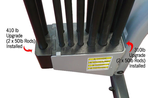 - 210 pounds of Power Rod® Resistance (Upgradable to 410 lbs): The Power Rod resistance system is the core of the Xtreme 2 SE's effectiveness. Featuring a total resistance of hefty 210 pounds of resistance. If that isn't heavy enough the Xtreme 2 SE can also be upgraded to 410 pounds of resistance with additional power rods which are sold separately.