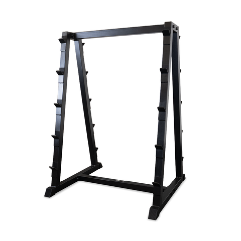 This stylish rack holds 10 barbells horizontally. Great for gyms or trainers to keep your equipment tidy and easily accessible by clients.