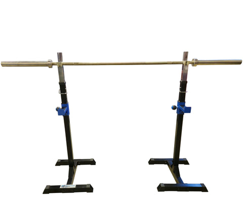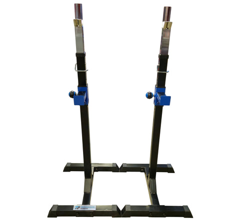 Designed for up to 400 lbs, these squat stands give solid stability and strong support for many different exercises. This stand adjusts to your workout needs with height-adjustable supports and spotter arms letting you safely challenge yourself.