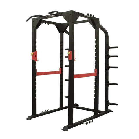 It's solid and good-looking, too - constructed with heavy-gauge 2.5 MM, 3 MM steel tubing in 50 MM and 100 MM diameters, electro-welded at every joint. Then it's finished with electrostatic powder coating and cured after adhesiveness enhancement pre-treatment for protection, aesthetic quality, and superior durability. Heavy-duty J-hooks and spotter's arms allow you to perform every lift with confidence.