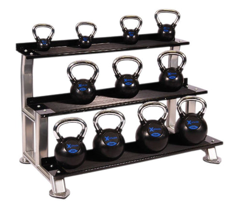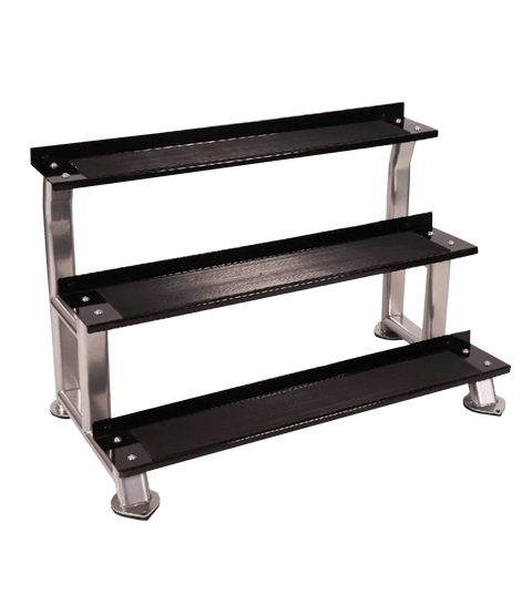 This 3-tier rack with solid shelves is ideal for storing kettlebells or dumbbells to keep your space organized.