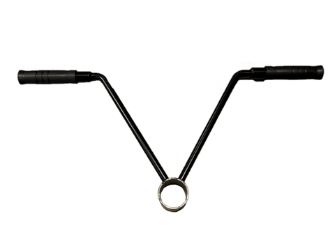 Dual handle attachment for performing wider core movements. Fits onto an Olympic bar.