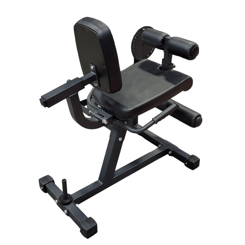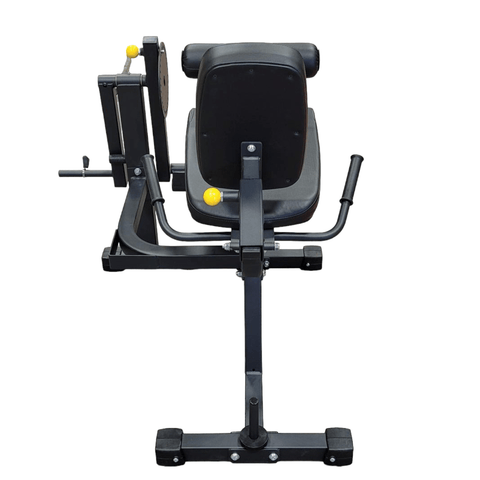 With up to 300 LB of plate-loaded resistance, this machine provides a comprehensive lower-body workout. It targets a Latin dictionary of muscles, including biceps femoris, semitendinosus, rectus femoris, and vastus lateralis.